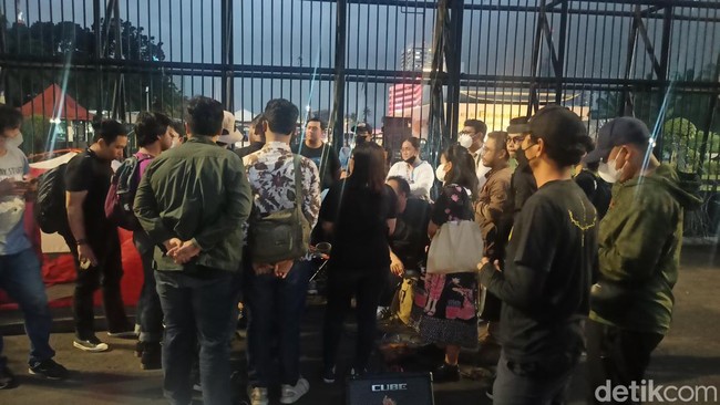 Pantauan detikcom pukul 18.10 WIB di depan gedung DPR, Selasa (6/12/2022), massa masih berdiskusi. Dua buah tenda yang didirikan juga masih belum dibongkar.
