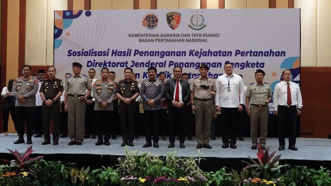 "Ini sudah satu bentuk prestasi. Dan apabila kita lihat objek yang sudah mereka kuasai, itu ada kurang lebih 54 ribu hektare, kerugian negara Rp 2,5 triliun dan melibatkan 412 para mafia. Mafia itu ada 5 yaitu: oknum BPN iya, sikat terus. Kedua oknum pengacara pasti ikuti kliennya, ketiga notaris, kemudian camat-kepala desa, ini oknum," bebernya.