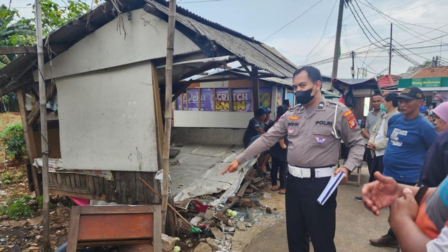 Truk kontainer yang sedang diparkir di Tambun Selatan, Kabupaten Bekasi, tiba-tiba mundur hingga menabrak gerobak buah dan mi ayam. Satu orang dilaporkan tewas dalam insiden tersebut.