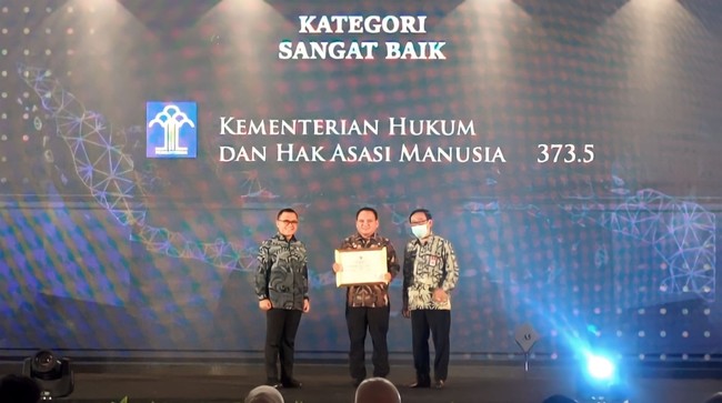 Kementerian Hukum dan HAM (Kemenkumham) mendapatkan Anugerah Meritokrasi Tahun 2022 dengan predikat 'Sangat Baik' dari Komisi Aparatur Sipil Negara (KASN). Berdasarkan hasil penilaian, Kemenkumham memperoleh nilai 373,5 poin.
