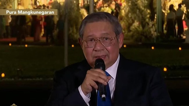 Presiden ke-6 RI Susilo Bambang Yudhoyono (SBY) menghadiri acara tasyakuran malam pernikahan putra Presiden Joko Widodo (Jokowi), Kaesang Pangarep, dengan Erina Gudono. SBY kemudian bercerita hubungan baik dengan Presiden Jokowi.