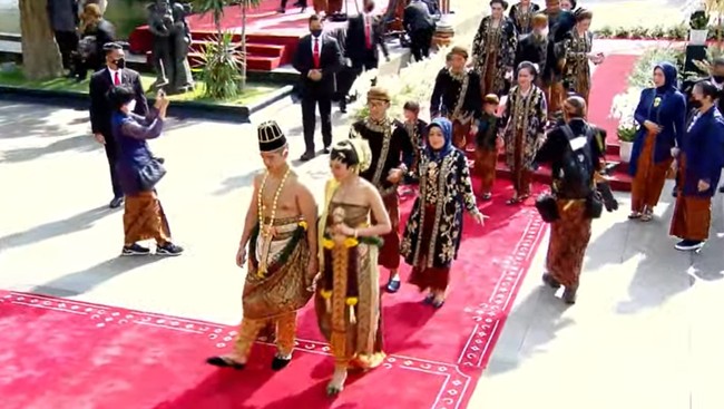 Sebelum tasyakuran, Jokowi lebih dulu menggelar ngunduh mantu. Prosesi ngunduh mantu ini digelar di Loji Gandrung.