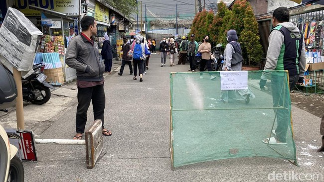 Akses jalan menuju Stasiun Pondok Cina sementara ditutup. Namun pejalan kaki masih bisa melewati jalan.