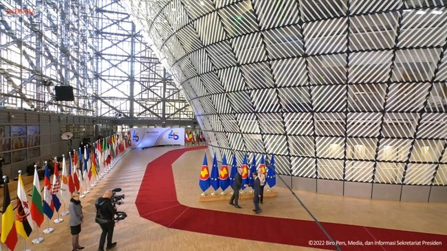 Presiden Joko Widodo (Jokowi) menghadiri pembukaan Konferensi Tingkat Tinggi (KTT) ASEAN-Uni Eropa di Brussels, Belgia. Jokowi disambut oleh Presiden Komisi Eropa Ursula von der Leyen dan Presiden Dewan Eropa Charles Michel.