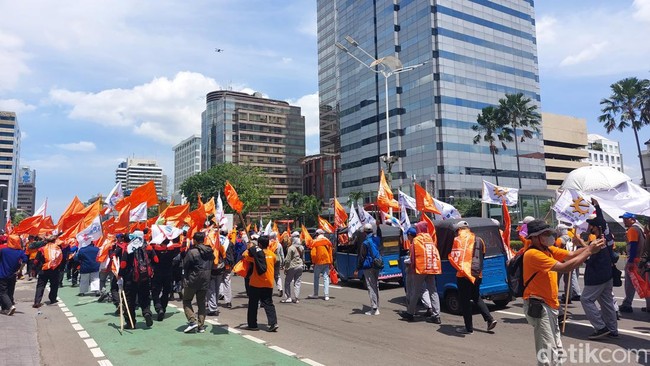 Massa buruh yang tergabung dalam Exco Partai Buruh dan Organisasi Serikat Buruh melakukan long march dari Bundaran HI menuju kawasan Patung Kuda. Massa menggelar aksi berkonsep karnaval sekaligus akan menyuarakan beberapa tuntutan.