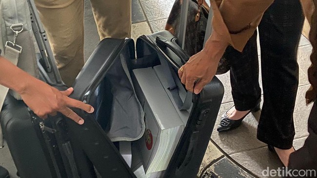 Terlihat salah satu koper tersebut berisi tumpukan dokumen kertas berwarna putih. Tiga koper dokumen ini katanya masih belum seluruhnya.