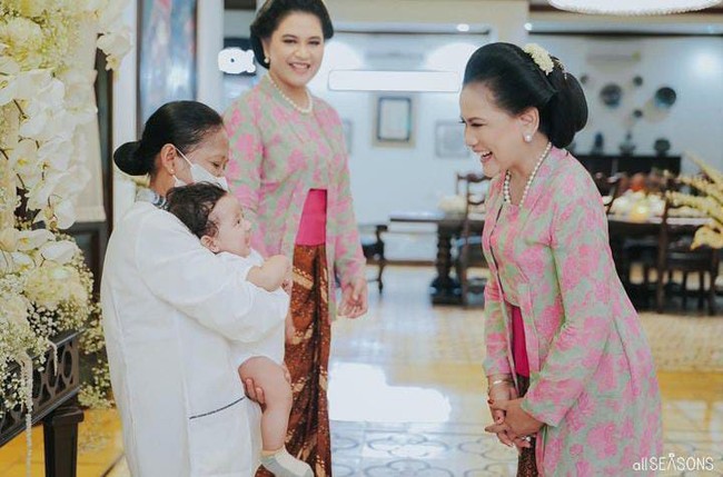 Dalam foto yang diunggah Kahiyang, tampak Saud sedang digendong seseorang. Saud terlihat memakai baju putih. Tampak Ibu Negara Iriana Jokowi sedang bercengkrama dengan cucunya itu.