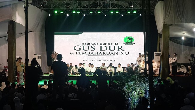 Haul ke-13 untuk mengenang kepergian presiden keempat Indonesia, Abdurrahman Wahid atau Gus Dur kembali digelar di kediaman Gus Dur di kawasan Ciganjur, Jagakarsa, Jakarta Selatan (Jaksel). Sejumlah tokoh Nahdlatul Ulama (NU) terlihat hadir dalam acara tersebut.