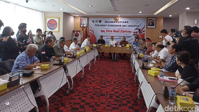 Ketua DPRD DKI Jakarta Prasetyo Edi Marsudi mendampingi Pj Gubernur Heru Budi sowan ke semua fraksi. Di depan anggota Dewan, Prasetyo memperkenalkan Heru Budi sebagai gubernurnya DPRD DKI Jakarta.