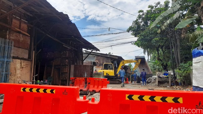 Terlihat pada Selasa (20/12/2022) siang, alat berat menurunkan material di lokasi proyek. Ruas jalan ini ditutup sementara. Jl Buluh Perindu 1 ini menjadi akses warga permukiman setempat. Lebar jalan ini kurang lebih 3 meter.