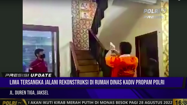 Saat itu tangan Ferdy Sambo masih tampak diikat dengan kabel ties. Ferdy Sambo tampak memegang pistol.