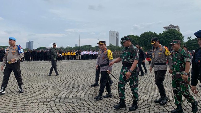 Pantauan detikcom di kawasan Monas, Jakarta Pusat, Kamis (22/12/2022), apel pasukan persiapan pelaksanaan Operasi Lilin Jaya dimulai sekitar pukul 09.00 WIB.