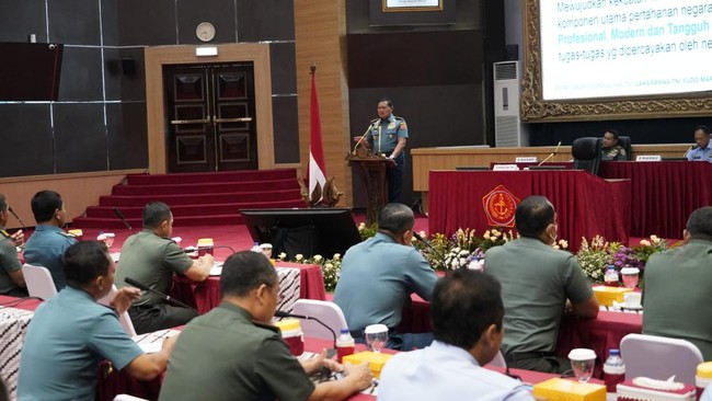 Laksamana TNI Yudo Margono melaksanakan entry briefing di awal kepemimpinannya sebagai Panglima TNI. Dia menyampaikan 7 poin pokok di depan para pejabat tinggi (pati) TNI.