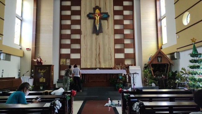 Maria mengatakan semua jemaat harus mematuhi protokol kesehatan pencegahan COVID-19 selama misa Natal. Jemaat diminta tetap memakai masker dan mencuci tangan sebelum masuk gereja.