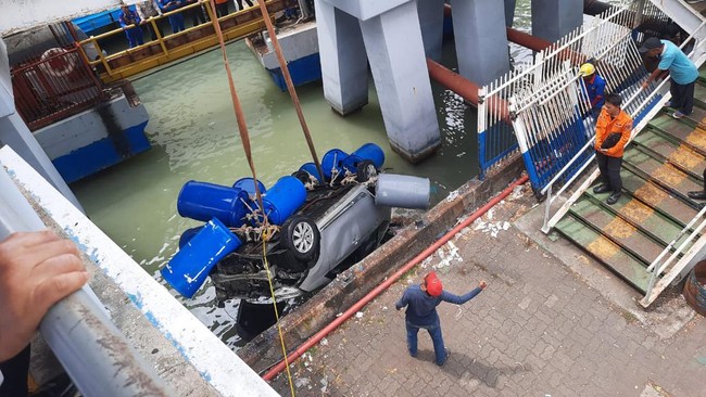 Saat hendak masuk ke kapal, mobil tiba-tiba oleng diduga tali side ramp kapal tak kencang hingga menyebabkan mobil tercebur.