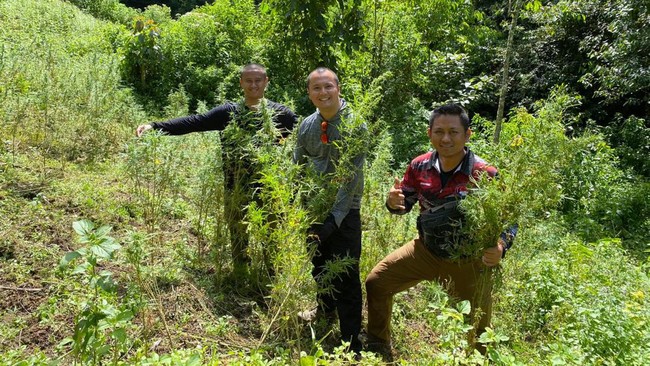 "Dari hasil penyelidikan, didapat 2 (dua) ladang ganja dan tanamannya. Ladang pertama memiliki luas kurang lebih 3 hektare dan ladang kedua memiliki luas kurang lebih 8 hektare dengan usia tanam 3-4 bulan, sedangkan untuk usia panen umur 7 bulan," ujar Direktur Narkoba Polda Metro Jaya Kombes Mukti Juharsa dalam keterangannya, Sabtu (24/12/2022).