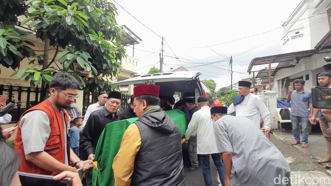 Pantauan detikcom, Minggu (25/12/2022) di rumah duka di Pesanggrahan, Jakarta Selatan, ambulans pembawa jenazah tiba pada pukul 11.49 WIB. Keranda jenazah diturunkan dari ambulans oleh beberapa orang.