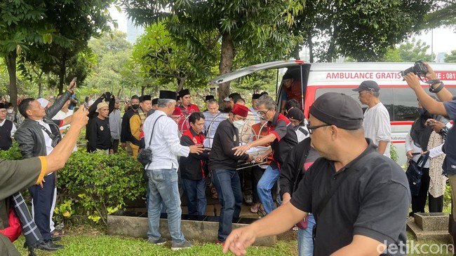 Pantauan detikcom di lokasi sekitar pukul 16.18 WIB, Minggu (25/12/2022), terlihat ambulans yang membawa peti jenazah Ridwan Saidi tiba di lokasi. Selain itu, terdapat sejumlah iring-iringan mobil pengantar yang mengikuti dari belakang.