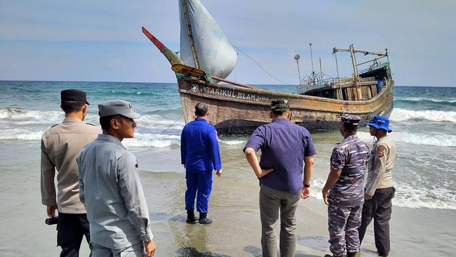 Sebuah kapal kayu yang membawa imigran ilegal Rohingya, Myanmar karam di Pantai Desa Ladong, Aceh Besar. Badan Keamanan Laut (Bakamla) RI turut membantu evakuasi para penumpang kapal itu.