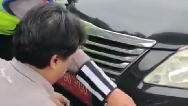 Informasi ini disampaikan akun instagram resmi twitter Polda Metro Jaya @TMCPoldaMetro. Dalam video yang diunggah, terlihat polisi meminta pengendara mencopot pelat B-1408-RFN. Setelah dibuka, ternyata ada pelat berwarna merah bertuliskan B-1109-PQQ di baliknya.