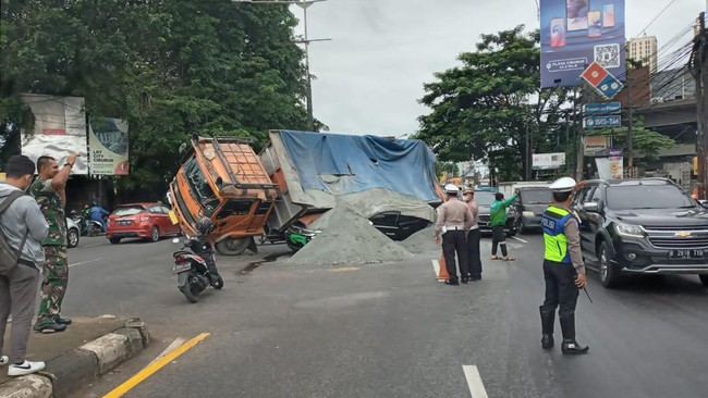Lihat video 'Penampakan Truk Pasir Timpa Mobil Dinas TNI di Cibubur':