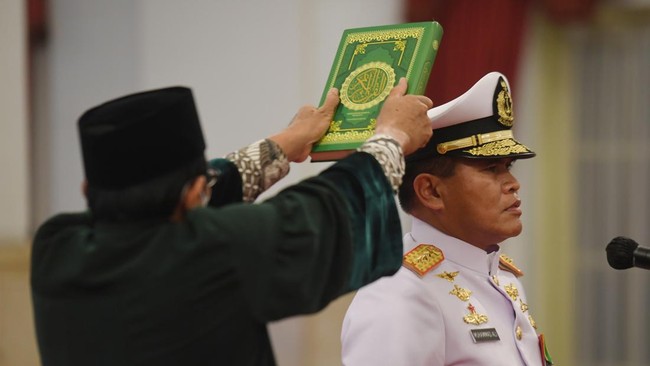 Diketahui, Laksamana Muhammad Ali resmi dilantik sebagai KSAL oleh Presiden Joko Widodo di Istana Negara, Jakarta Pusat, Rabu (28/12). Hadir sejumlah pejabat dalam acara pelantikan itu di antaranya Wakil Presiden Ma'ruf Amin, Menko Polhukam Mahfud Md, Mensesneg Pratikno, Menhan Prabowo Subianto, Panglima TNI Laksamana Yudo Margono, Kapolri Jenderal Listyo Sigit Prabowo, KSAD Jenderal Dudung Abdurachman, KSAU Marsekal Fadjar Prasetyo, dan Kepala Bakamla Laksdya Aan Kurnia.