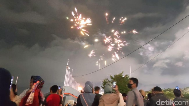 Pantauan detikSulsel di Anjungan Pantai Losari, Kota Makassar, tepat pukul 00.00 Wita, Minggu (1/1/2023) yang menandakan malam pergantian tahun, seketika langit Pantai Losari penuh dengan letusan kembang api tanpa henti.