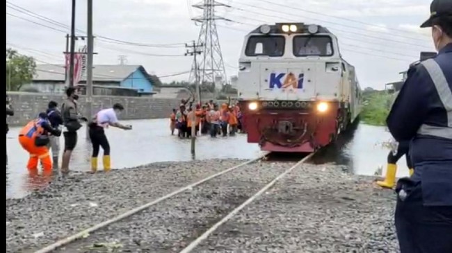 "Petak jalan Semarang Tawang-Alastua pada pukul 18.40 masih tergenang air dengan ketinggian kira-kira 20 cm di atas kop rel sehingga tidak bisa dilewati dengan normal," kata Ixfan dalam keterangannya, dilansir detikjateng, Minggu (1/1/2022).