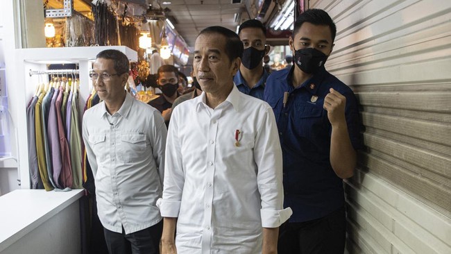 Kunjungan Jokowi ke Blok A Pasar Tanah Abang, Jakarta Pusat, ini merupakan yang pertama sejak PPKM dicabut pada Jumat (30/12/2022) lalu. Jokowi menyapa para pedagang pasar ditemani Pj Gubernur DKI Heru Budi Hartono.