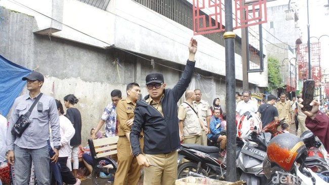 "Saya minta trotoar semua dibersihkan, akan disemprot. Saya minta dikosongkan, steril, trotoar ini akan dibersihkan semua," kata Bima Arya menggunakan pengeras suara di atas mobil pemadam kebakaran.