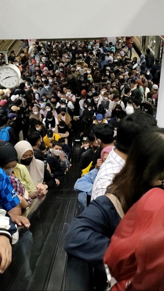 Stasiun Manggarai dipadati oleh pengguna kereta rel listrik (KRL) malam ini. PT Kereta Commuter Indonesia (KCI) memberikan penjelasan terkait kondisi membeludaknya pengguna KRL di Stasiun Manggarai.