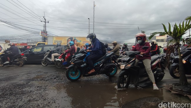 Pantauan detikcom, Selasa (3/1/2023) sore, lubang berisi genangan tampak hampir berada di seluruh ruas jalan. Pengendara hanya bisa melaju tak sampai 20 km per jam.