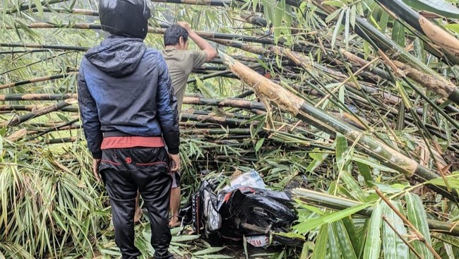 Saat kejadian, korban sedang membonceng satu penumpang di motornya. Motor korban pun rusak akibat tertimpa pohon bambu tersebut.