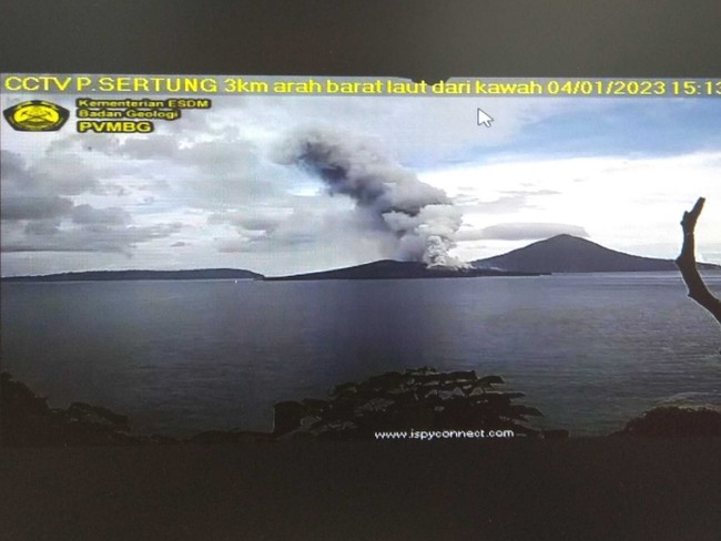 "Terjadi erupsi Gunung Anak Krakatau pada Rabu, 4 Januari 2023, pukul 15.09 WIB. Tinggi kolom letusan teramati ± 3.000 meter di atas puncak (± 3.157 meter di atas permukaan laut)," jelas PVMBG.
