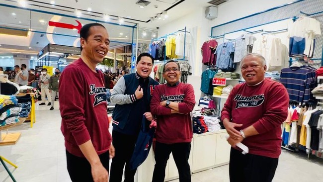 Akhirnya Jokowi, Pratikno, dan Basuki Hadimuljono masing-masing membeli sweater berwarna merah marun seharga Rp 399 ribu. Sementara Erick Thohir memilih sebuah jaket berwarna putih biru.