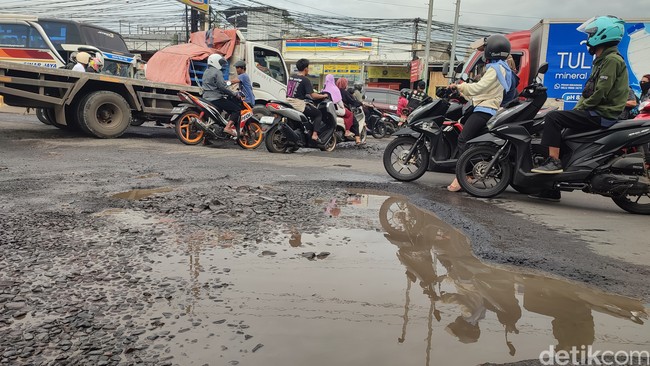 "Udah dari kapan tahu, sehari dua hari dibenerin kena hujan gini lagi, ditambalnya pakai aspal. Yang lewat sini kan mobilnya berat-berat ya, aspalnya kegerus habis. Paling nahan juga cuma seminggu sampai dua minggu," kata Sandi kepada wartawan di lokasi.
