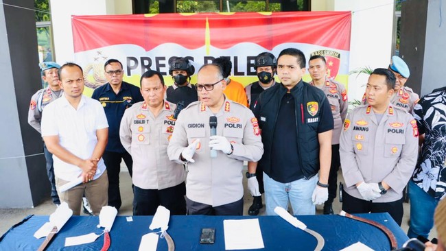 "F turun dari sepeda motor sambil mengacungkan sebilah celurit dan langsung menghampiri korban selanjutnya mengadu-adukan," ujar Kapolres Metro Bekasi Kombes Gidion, dalam keterangannya kepada wartawan, Jumat (6/1/2023)
