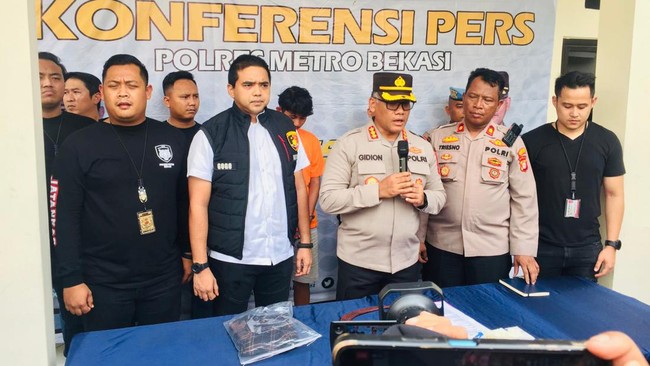 "Berdasarkan hasil penyelidikan dan penyidikan serta adanya keterangan saksi-saksi dan bukti-bukti yang didapat, pelaku dapat kami amankan di Kabupaten Semarang pada hari Minggu, 8 Januari 2023, sekira jam 11.00 WIB," ujar Kapolres Metro Bekasi Kombes Gidion Arif Setiawan kepada wartawan, Senin (9/1/2023).