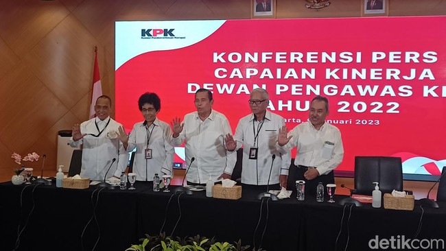 "(Sebanyak) 96 laporan yang kami terima dari masyarakat yang berhubungan dengan pelaksanaan tugas kami yang nomor 1 mengawasi pelaksanaan tugas dan wewenang KPK ada 96 pengaduan masyarakat yang berhubungan dengan itu," ujar Ketua Dewas KPK Tumpak Hatorangan Panggabean dalam konferensi pers, Senin (9/1/2023)