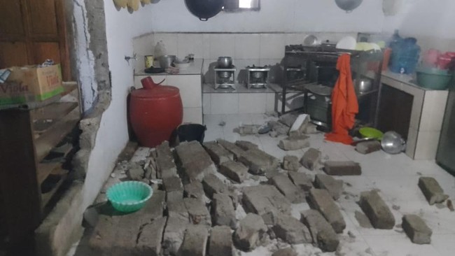 Dari foto yang diterima detikcom, Selasa (10/1/2023), terlihat tembok rumah warga ada yang roboh. Ada beberapa foto juga memperlihatkan kerusakan di bagian lain.