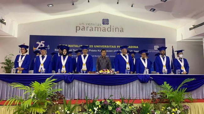 Wakil Presiden Republik Indonesia (Wapres RI) ke-10 dan ke-12, Jusuf Kalla (JK), menghadiri Sidang Senat Terbuka dalam rangka perayaan Dies Natalis ke-25 Universitas Paramadina. JK menyebutkan pemikiran dan pengembangan tokoh-tokoh Universitas Paramadina harus lebih besar dibanding kampus lainnya.