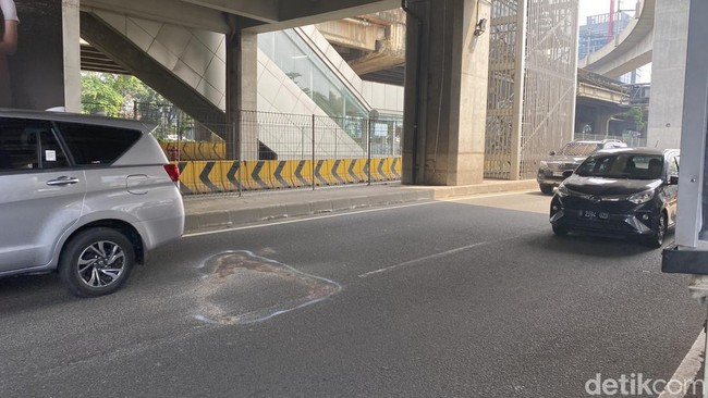 Pantauan detikcom di bawah kolong MRT Fatmawati, Jalan TB Simatupang, per pukul 10.25 WIB, terlihat bercak darah di lokasi kecelakaan. Lalu lintas di jalan itu terlihat ramai lancar untuk dilalui kendaraan.
