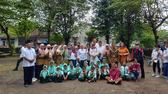 Sekitar 15 menit di lokasi, rombongan menuju ke Kampung Dolanan di Dusun Baderan, Desa Sidowayah. Di lokasi itu, Iriana Jokowi dan rombongan bertemu dengan puluhan siswa TK dan MI.
