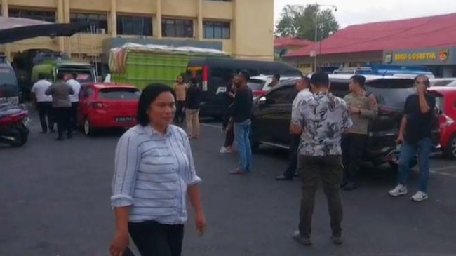Pegawai di Polda Sulut tampak berlarian keluar dari gedung saat merasakan getaran gempa. Mereka keluar untuk mencari lokasi aman.