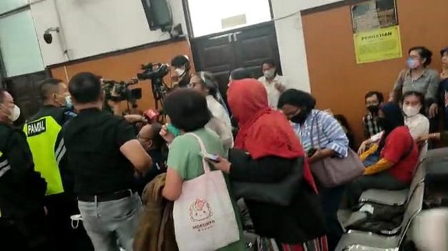 "Kepada para pengunjung, apabila tidak bisa tenang, kami akan skors dan sidang akan kami tunda," imbuh hakim.