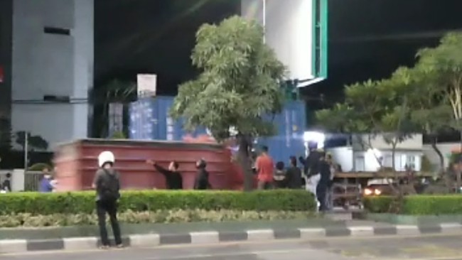 Kemudian ada dua orang yang menghadang truk. Salah seorang yang juga menghadang truk tersebut selamat setelah menghindar ketika truk tidak berhenti.