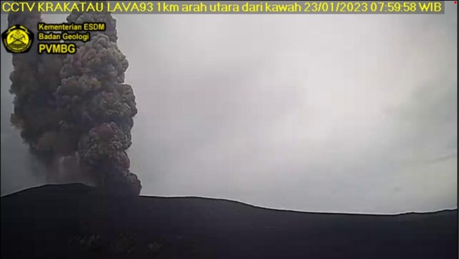Dilansir detikSumut, Minggu (23/1/2023), berdasarkan laman situs magma.esdm.go.id, tercatat aktivitas erupsi Gunung Anak Krakatau terjadi sejak pukul 00.41 WIB hingga 08.08 WIB. Dari tujuh kali erupsi yang terjadi, ketinggian kolom abu mencapai 657 meter di atas puncak.