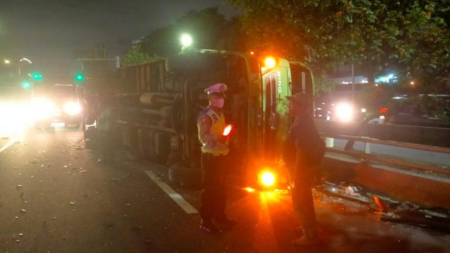 "Situasi arus lalu lintas di lokasi kecelakaan Tol Dalam Kota depan Slipi Jaya untuk sementara hanya bisa dilalui 1 jalur. Diimbau bagi pengendara pengguna jalan tol untuk berhati-hati bila melintas," imbuhnya.