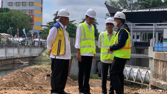 Pantauan detikcom, Selasa (24/1/2023) pukul 10.00 WIB, Jokowi telah tiba di titik ketiga. Turut mendampingi Jokowi dalam peninjauan ini Menteri PUPR Basuki Hadimuljono dan Pj Gubernur DKI Jakarta Heru Budi Hartono.