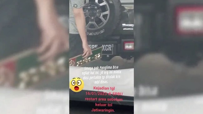 Sebelumnya, video yang menunjukkan seorang pria melepas pelat dinas TNI saat akan isi BBM jenis Pertalite viral di medsos. Peristiwa itu terjadi di SPBU Rest Area di Tol Jakarta-Cikampek (Japek).
